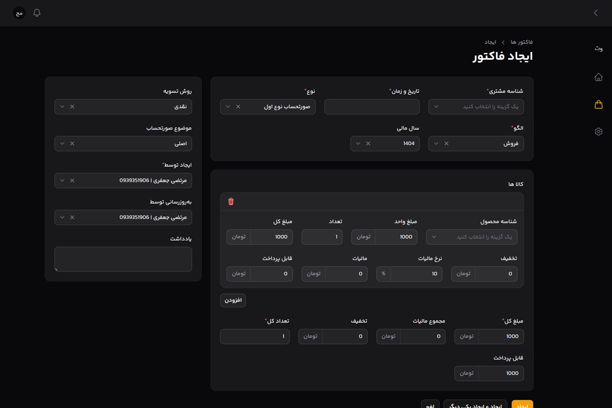 پشتیبانی از انواع صورتحسابها: پشتیبانی از صورتحسابهای نوع اول، دوم، اصلاحی و ابطالی.